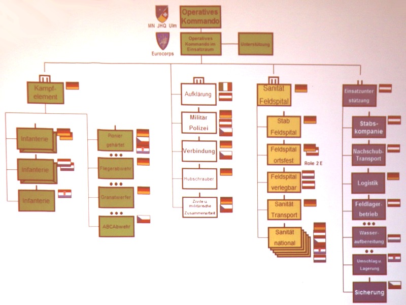 Bei der Ausplanung und Koordinierung der Vorbereitung und des Einsatzes wird bei multinationalen Verbänden eine Nation als sogenannte Framework-Nation festgelegt und durch Vertreter der anderen beteiligten Streitkräfte unterstützt.