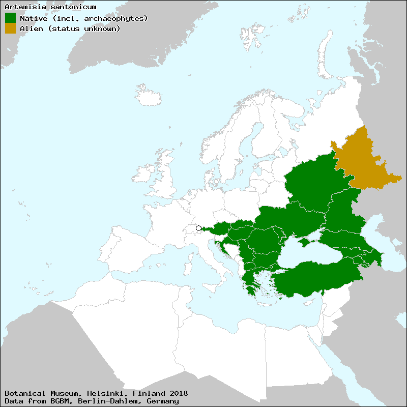- Artemisia santonicum L. subsp. santonicum: Sie kommt in Ungarn, auf der Balkanhalbinsel, in Rumänien, Moldawien, der Ukraine, Russland, in der Ägäis und in der Türkei vor.[1]